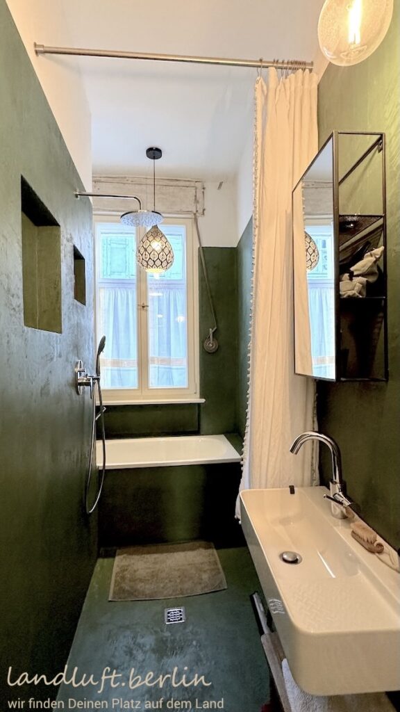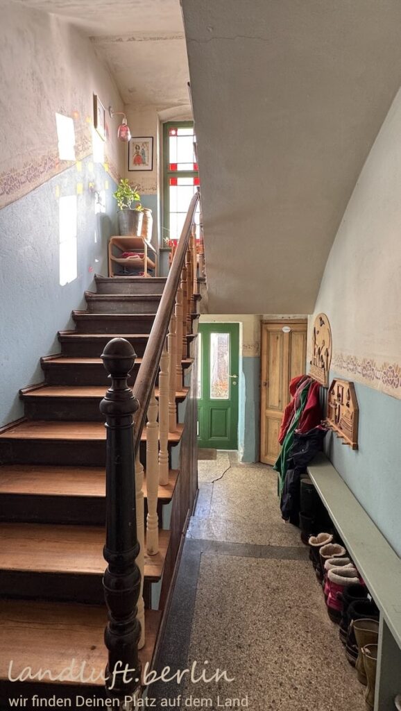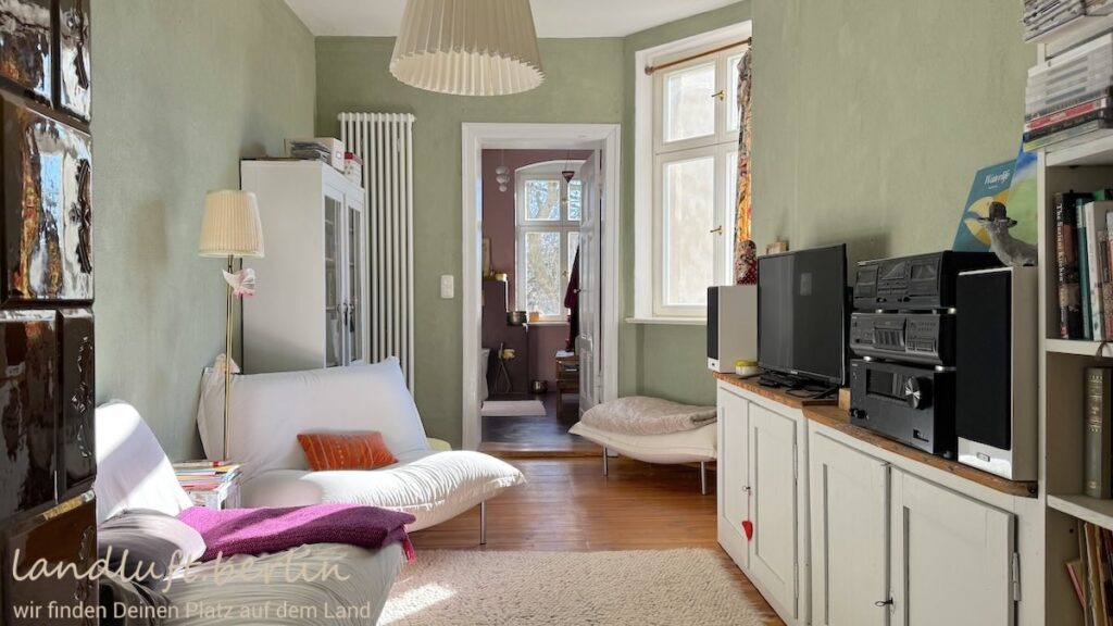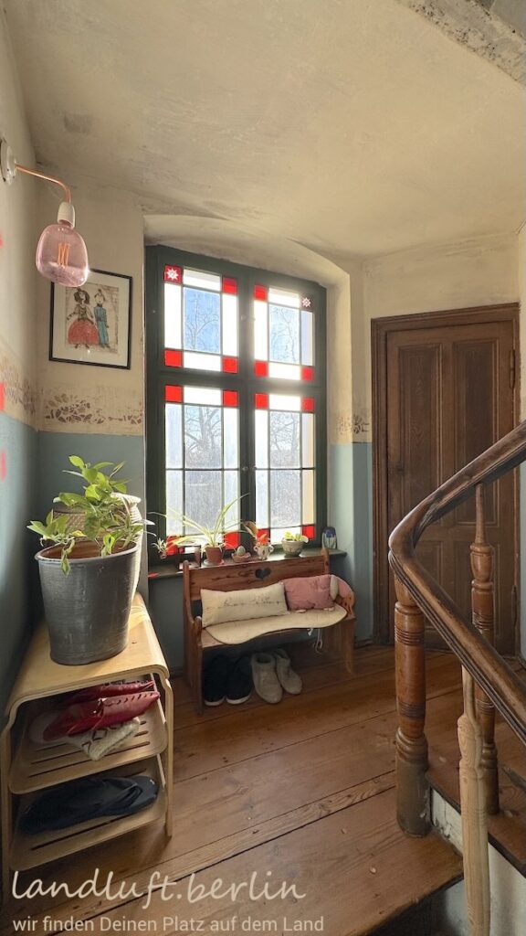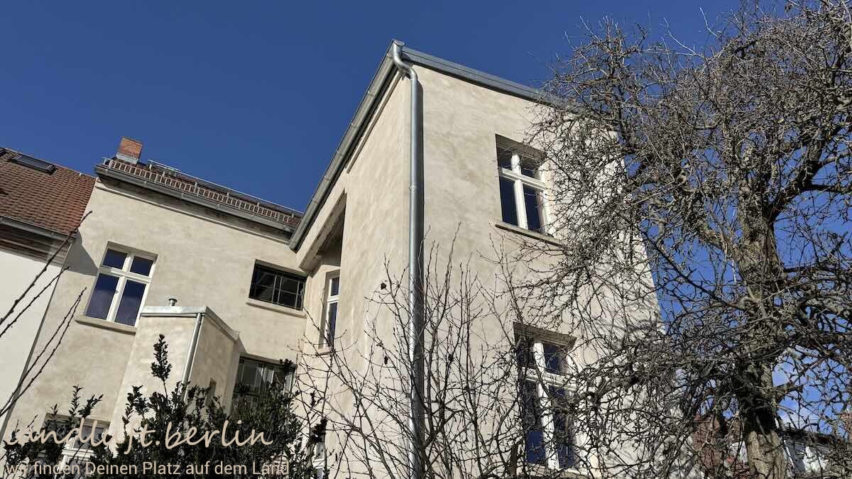 The three-storey townhouse was comprehensively renovated in 2020/21 in accordance with heritage conservation standards. Many original elements such as doors, windows and wooden floorboards were preserved, while others – including Moroccan tile or concrete floors and brass bathroom fittings – were carefully added to create a harmonious overall design. The approximately 175 m² of living space are spread over three floors with a total of 12 rooms. Many rooms look out across the small garden and the historic city wall toward the Havel. The attic is already insulated and fitted with roof windows and offers potential for conversion, providing about 33 m² of additional living space. The staircase is defined by a wooden stair, large coloured single-pane windows and small bathrooms on the intermediate landings. On the ground floor there is a self-contained apartment (approx. 35 m²). The house also has a full basement with the heating system, a laundry room, a hobby room and additional storage space.
