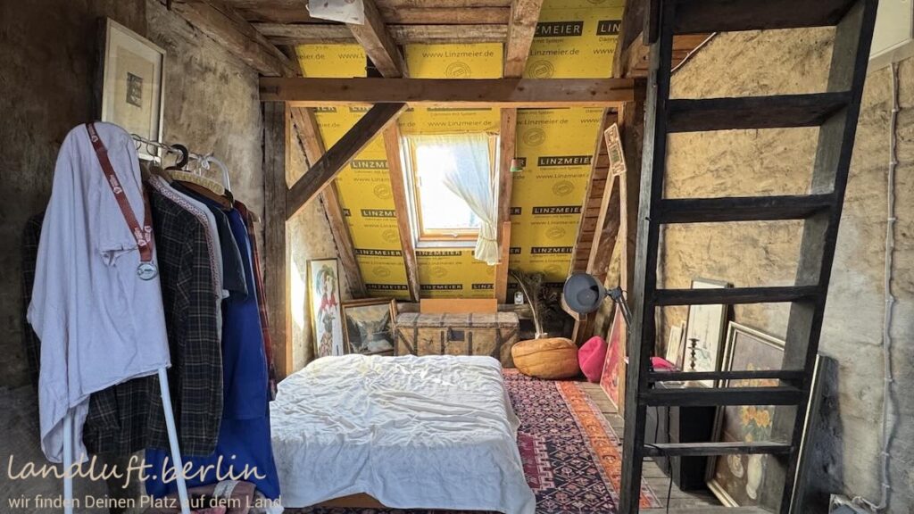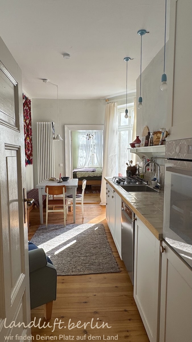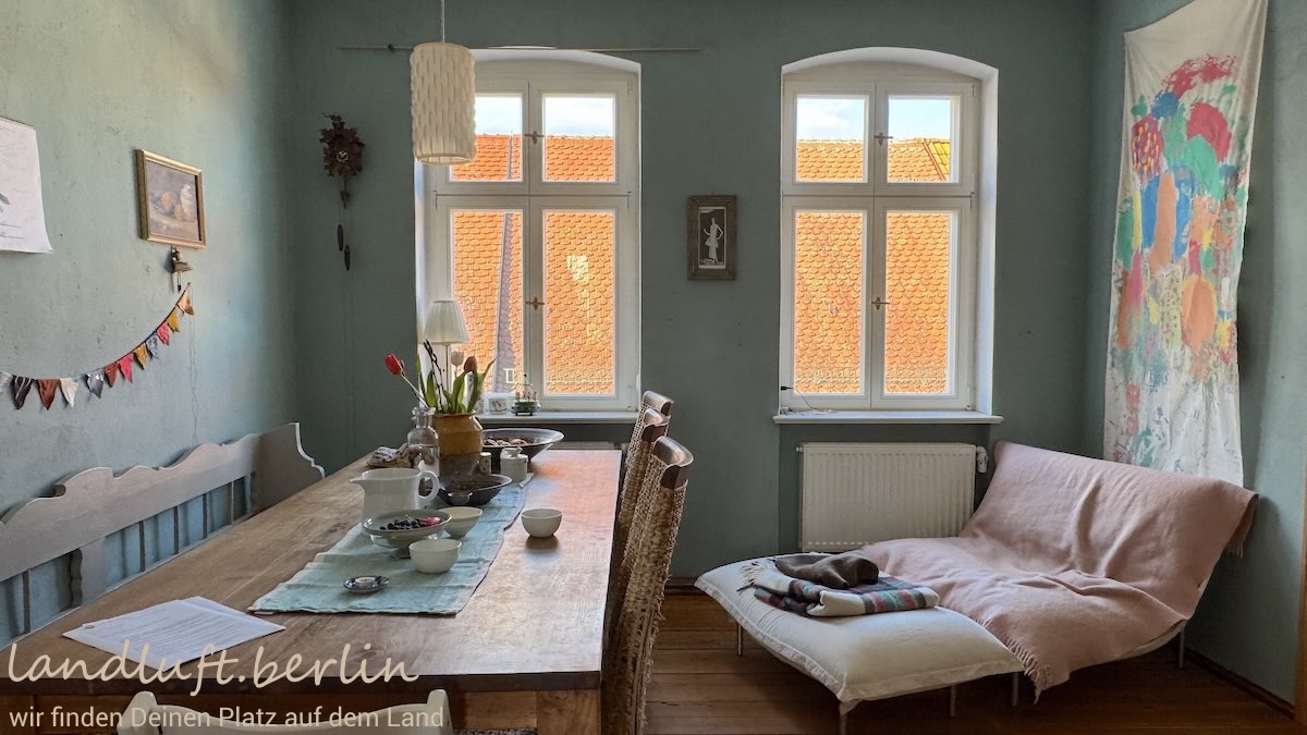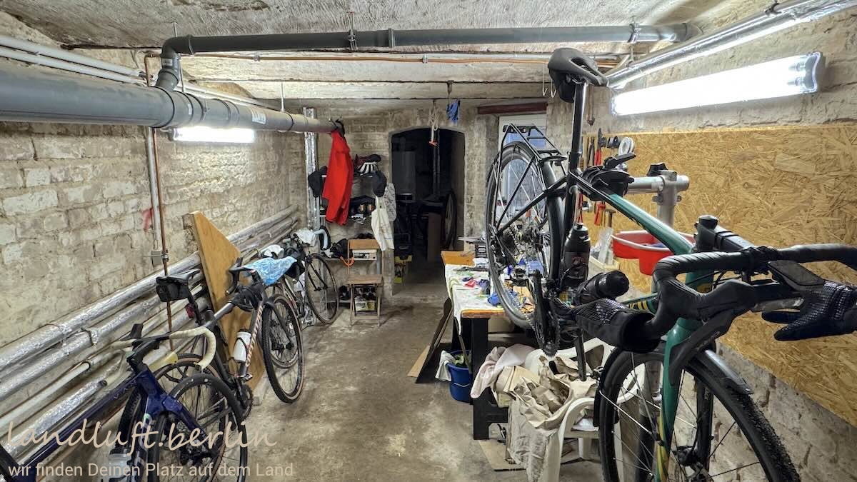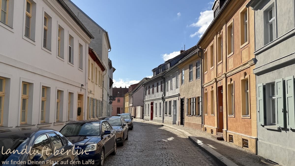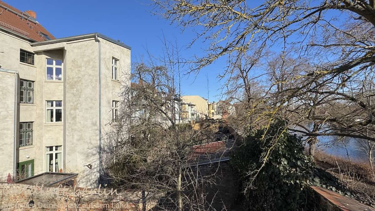 The property is located on a quiet cobblestone residential street in the historic old town of Brandenburg an der Havel, lined mainly with two-storey Gründerzeit houses. It is oriented roughly southeast–northwest and tapers slightly toward the garden. The small but cosy garden (approx. 80 m²) includes a shed, a bicycle shelter, a dining area and a pear tree about eight metres high. About 150 metres away there is a spot on the Havel where a paddleboat or SUP can easily be launched; a pleasant sandy swimming area lies roughly 600 metres away.
