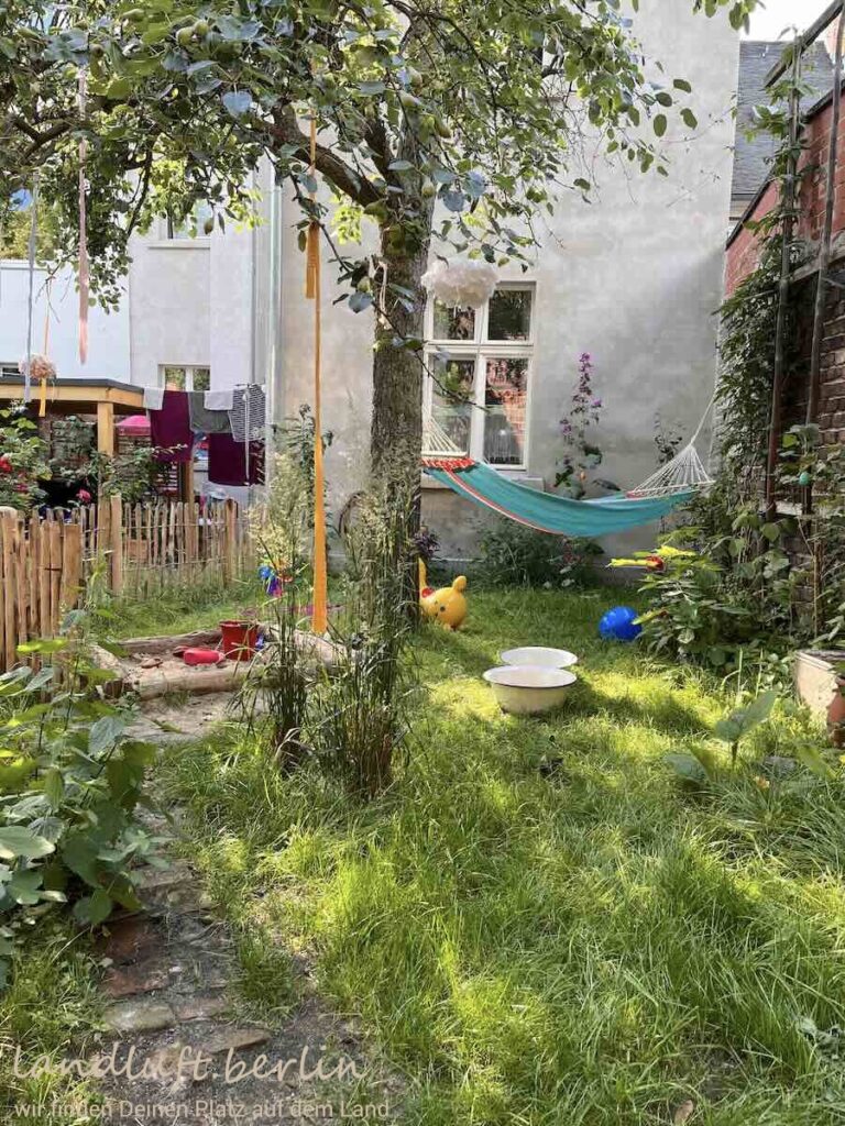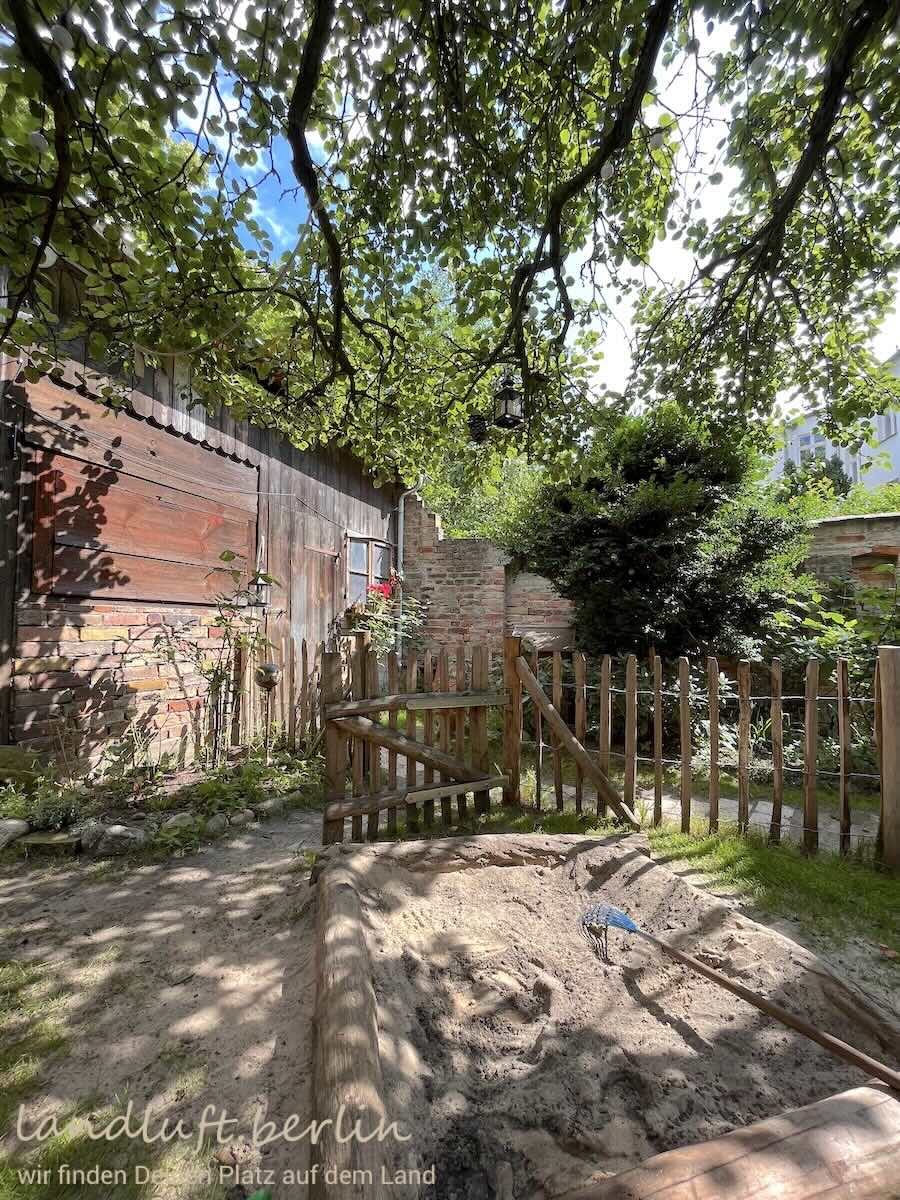 Das Grundstück liegt in einer ruhigen, mit Kopfsteinen gepflasterten Anliegerstraße in der Altstadt von Brandenburg an der Havel, geprägt von meist zweigeschossigen Gründerzeithäusern. Es ist annähernd Südost–Nordwest ausgerichtet und verjüngt sich leicht zum Garten hin. Im kleinen aber gemütlichen und weitgehend uneinsehbaren Garten (circa 80 m²) befinden sich ein Schuppen, ein Fahrradunterstand, ein Essplatz und ein etwa acht Meter hoher Birnbaum. Rund 150 Meter entfernt lässt sich an der Havel ein Paddelboot einsetzen; eine schöne, sandige Badestelle liegt etwa 600 Meter entfernt.