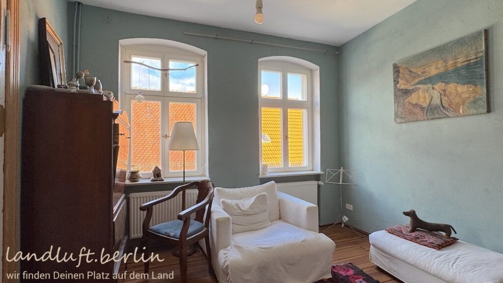 Das dreigeschossige Stadthaus wurde 2020/21 grundlegend und denkmalgerecht saniert. Viele Bauteile wie alte Türen, Fenster und Dielenböden blieben erhalten, andere Details – etwa Böden aus marokkanischen Fliesen oder Beton Ciré sowie Badarmaturen aus Messing – wurden mit Gespür für ein stimmiges Gesamtbild ergänzt. Die rund 175 m² Wohnfläche verteilen sich auf drei Etagen mit insgesamt 12 Zimmern. Von vielen blickt man über den kleinen Garten und die Stadtmauer hinweg auf die Havel. Das bereits gedämmte Dachgeschoss mit Dachflächenfenstern und zusätzlich circa 33 m² Wohnfläche erscheint ausbaubar. Das Treppenhaus des einstigen Mehrfamilienhauses prägen eine Holztreppe, große farbige Einfachfenster und kleine Bäder in den Zwischengeschossen. Im Erdgeschoss befindet sich eine autarke Wohnung (circa 35 m²). Das Haus ist voll unterkellert; hier befinden sich Heizung, Waschküche, Hobbyraum und weitere Abstellräume.
