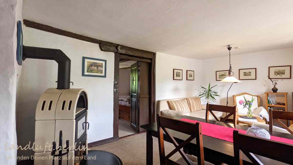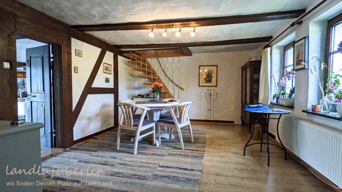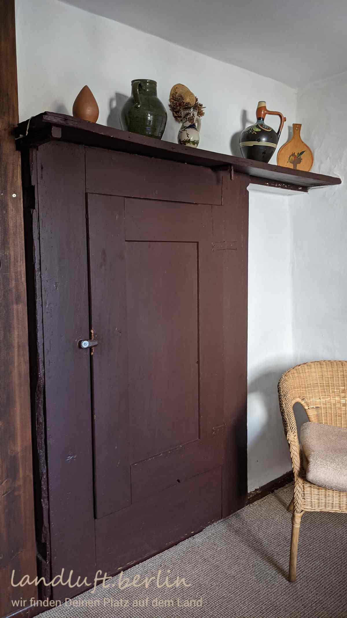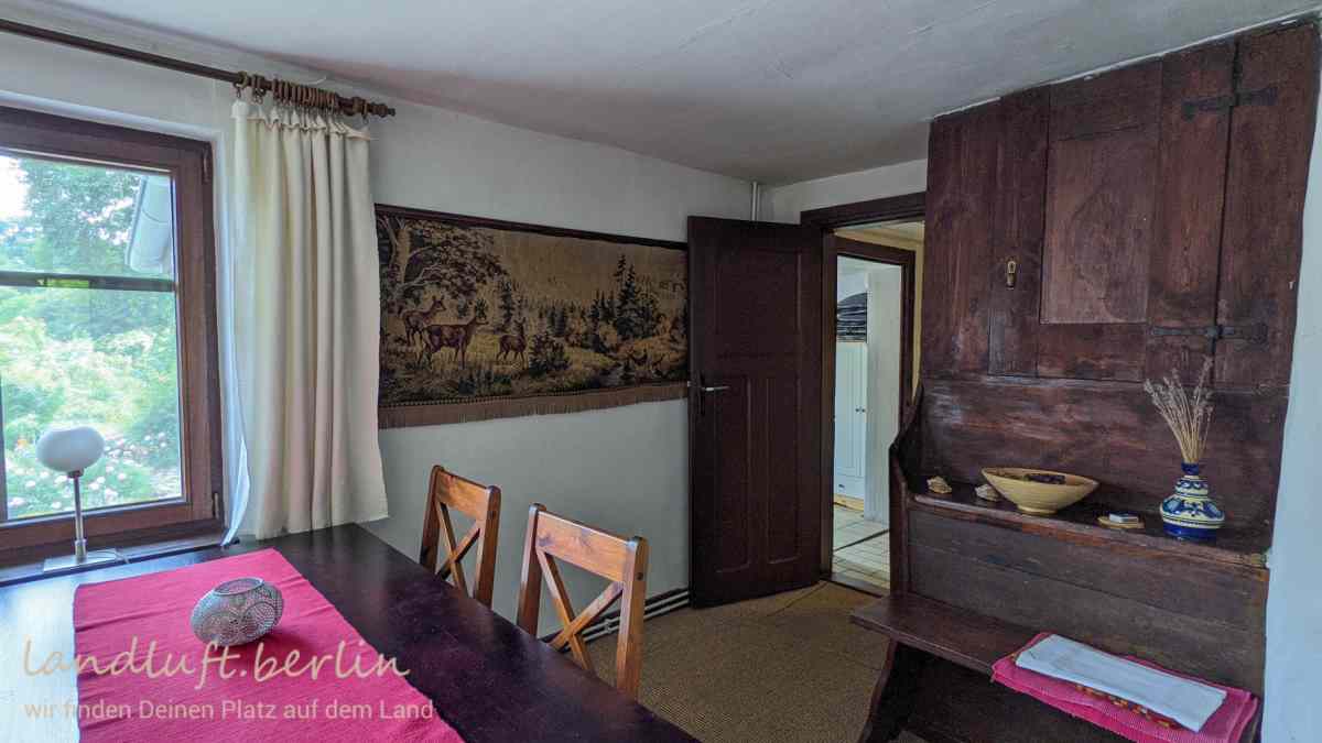 - Wohn-Esszimmer gartenseitig im Gästebereich mit altem Einbauschrank