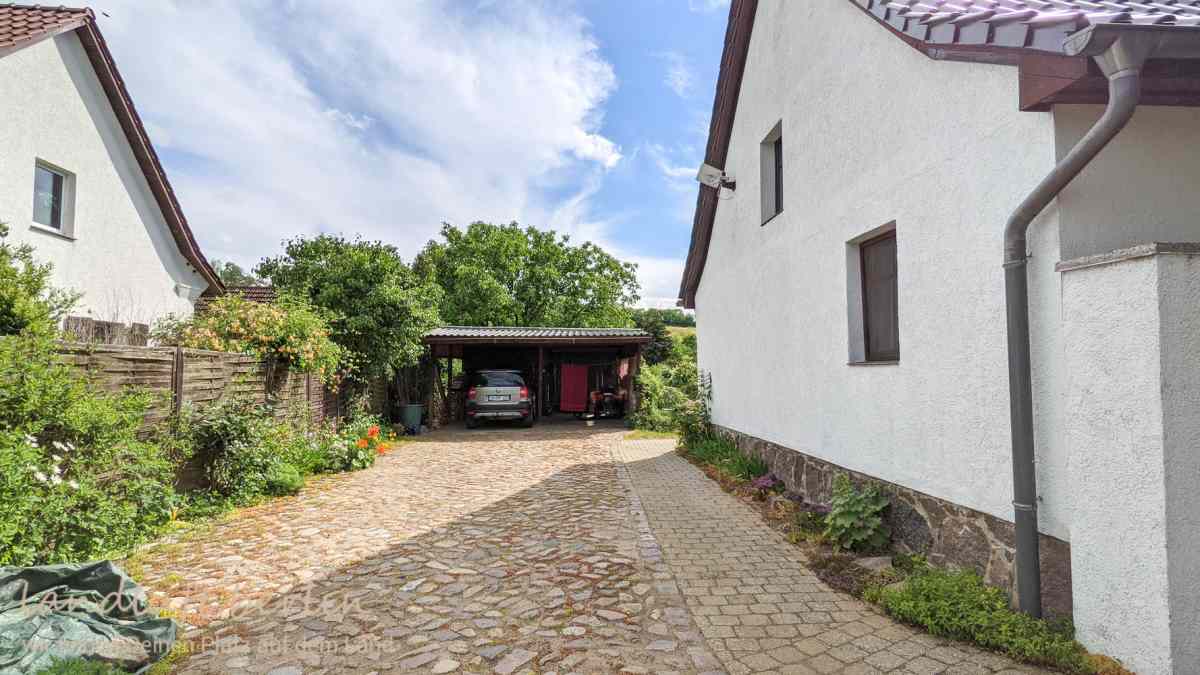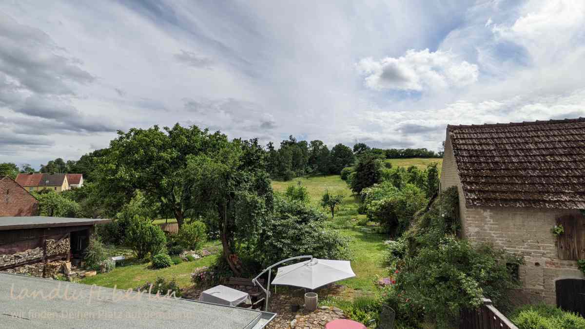 - Blick vom Haus auf das Grundstück nach Süden zum Weinberg