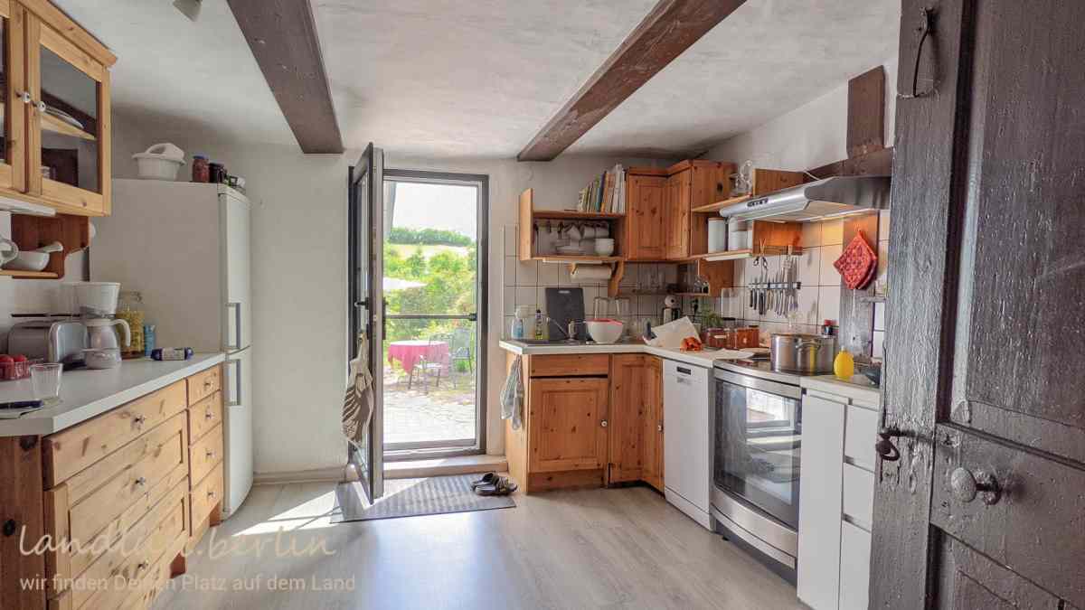 - Der alte Backofen, Blick in die Gästeküche und zum Garten
