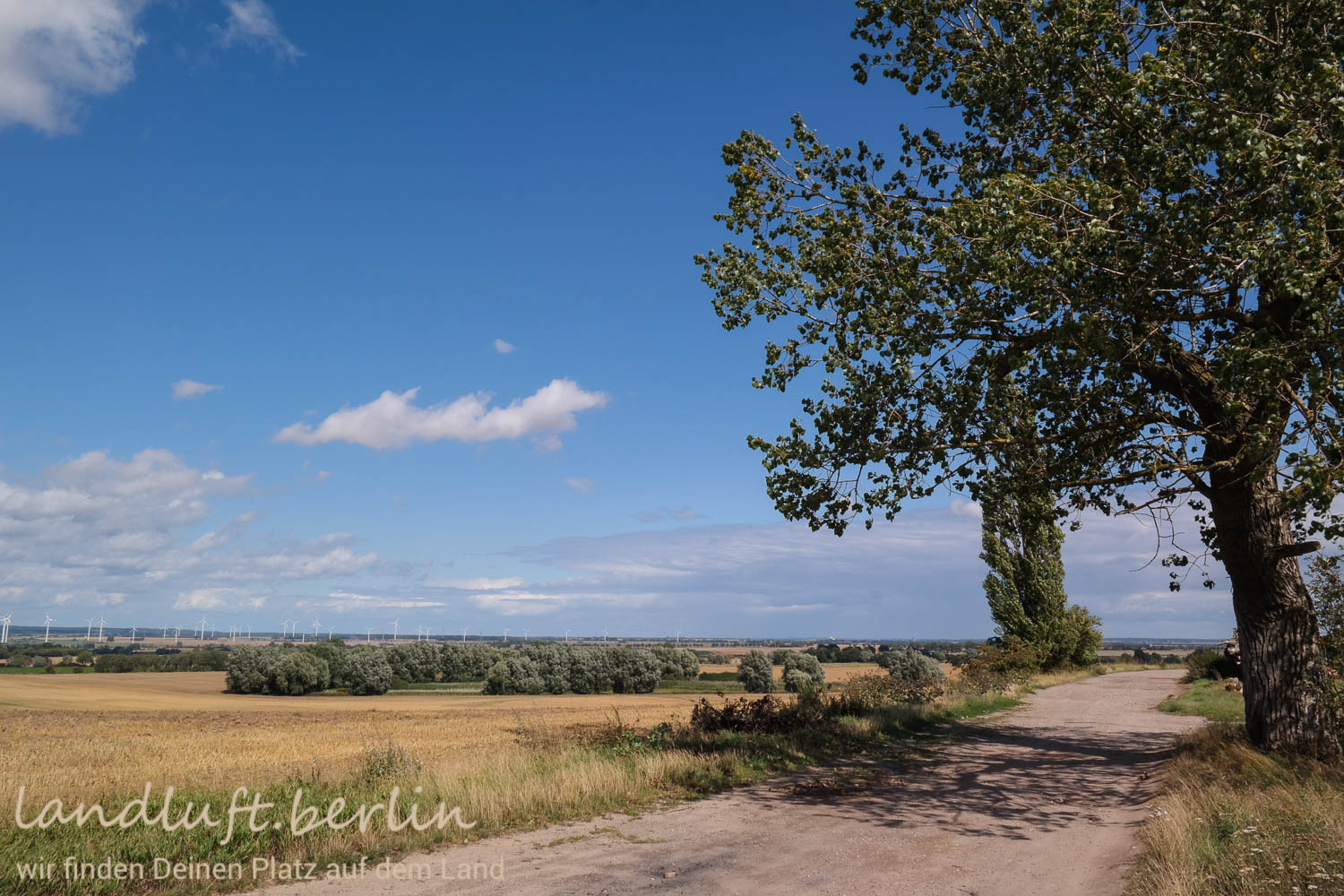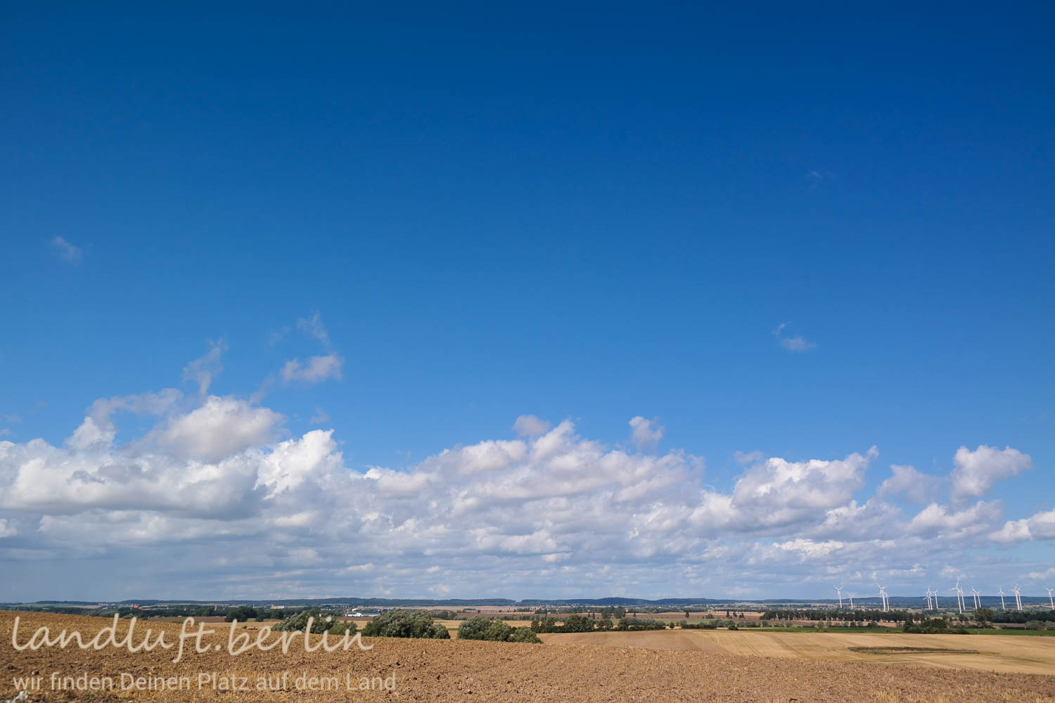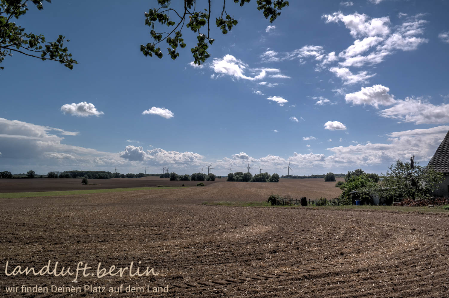The partly developed plot (electricity, water, telecom) of land measures 5,100 m². It lies on a hill in the northern Uckermark, just outside a little village with a stately home in its center. The wide views to the south and especially the north convey an impression of openness almost like on the seaside. From Berlin by road via the A11 and the A20 it takes about 1½ hours. Connections to the mainline railway network are available in nearby Nechlin (Berlin to Stralsund line) and Strasburg Uckermark (Szczecin to Lübeck line).