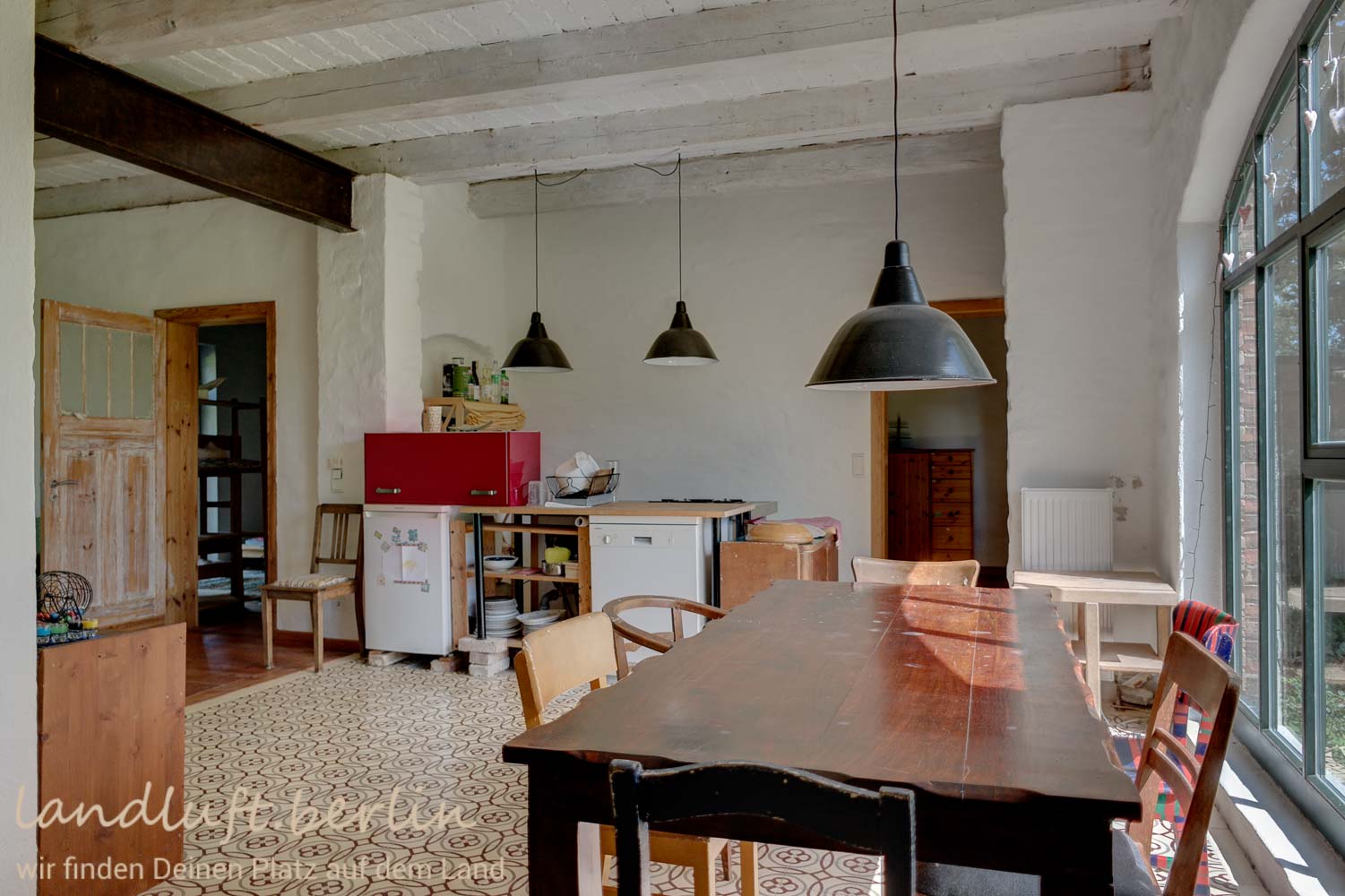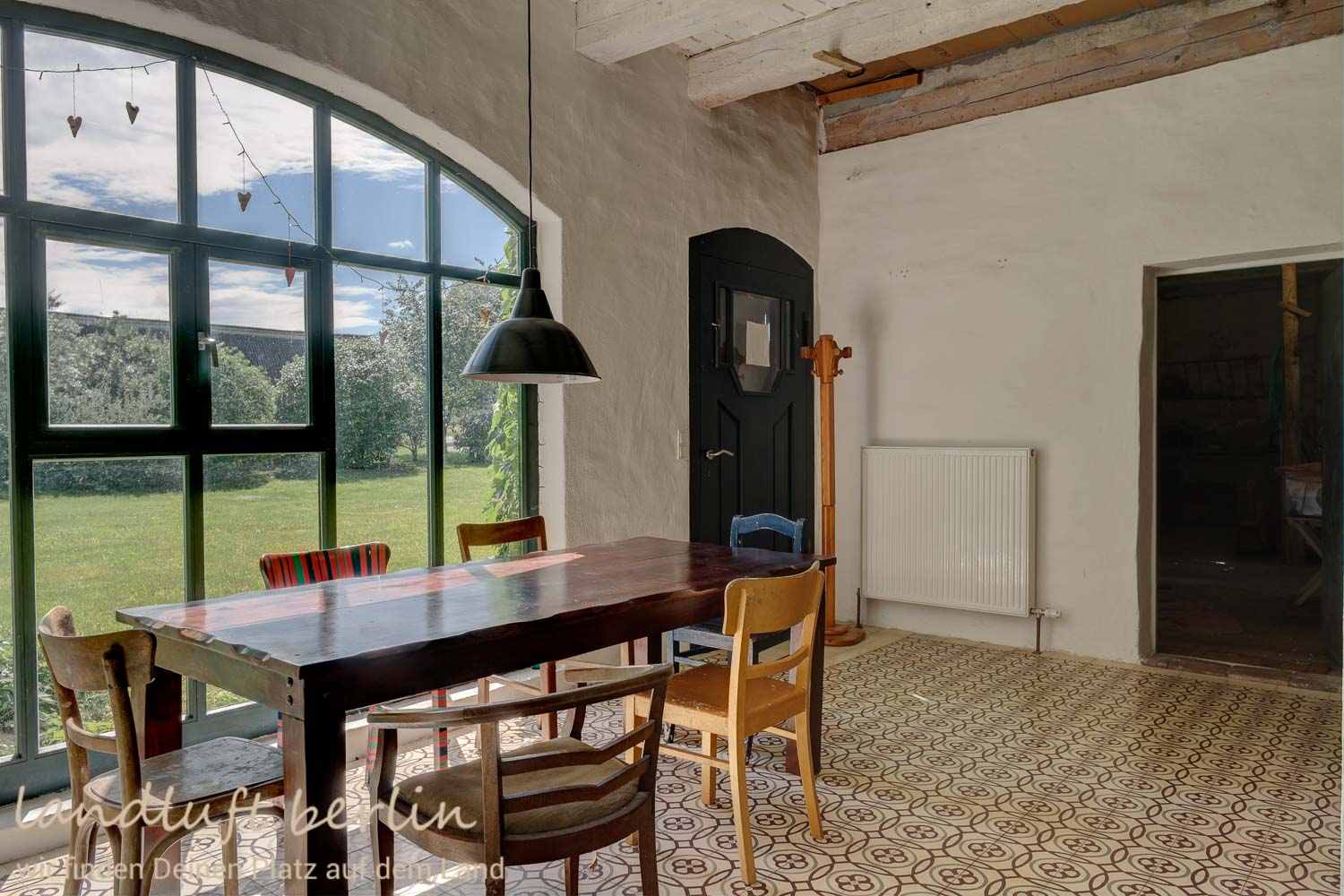 An old horse stable, converted in good quality and taste. Situated on the edges of a former estate south of river Peene and a good two hours north of Berlin. The first Baltic beach close to the University town of Greifswald is 30 min away. It takes about one hour to the longest sandy beaches of Germany on the island of Usedom. The converted living area comprises about 90 m². Further approx. 250 m² are still available for conversion. There are beautiful views to the old orchard through large arched windows from the spacious indoors with ceiling heights of almost 4 m. The plot with a size of 2,750 m² seamlessly merges into wide-open pastures loosely scattered with trees.