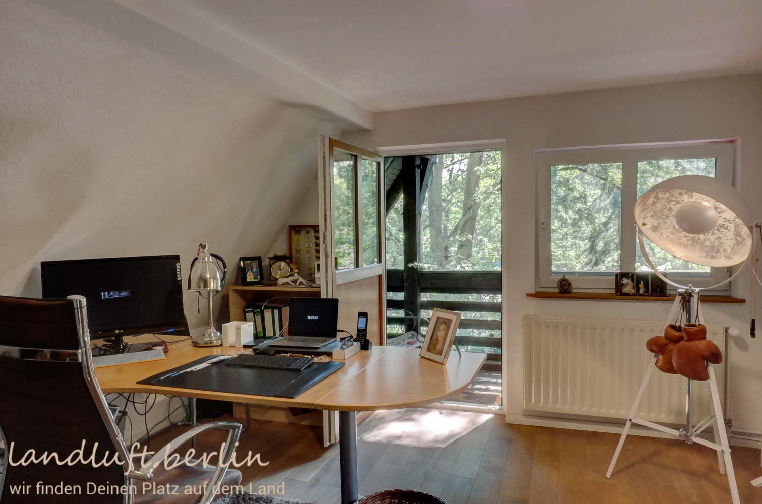 A mansion formerly used as a guesthouse of Liebenberg Castle, with a large carport and garden sauna. Built in 1937 in rustic style, extended in 1979, with a living space of approx. 240 m². Situated alone on the edge of a nature reserve in the northern Berlin foothills on a 6,327 m² plot of land with beautiful old trees, on a small hill and therefore with a view of the wide surroundings. Both by train and by car you can reach the centre of Berlin in less than an hour. Mushroom forest, bathing lakes or riding stables are all within easy reach on foot or by bike. By car you can quickly reach the Ruppiner Land, the Havel lakes and the former clay-pits around Zehdenick or the Schorfheide. The infrastructure locally and in the nearby towns of Oranienburg, Gransee and Zehdenick is good and continues to develop.