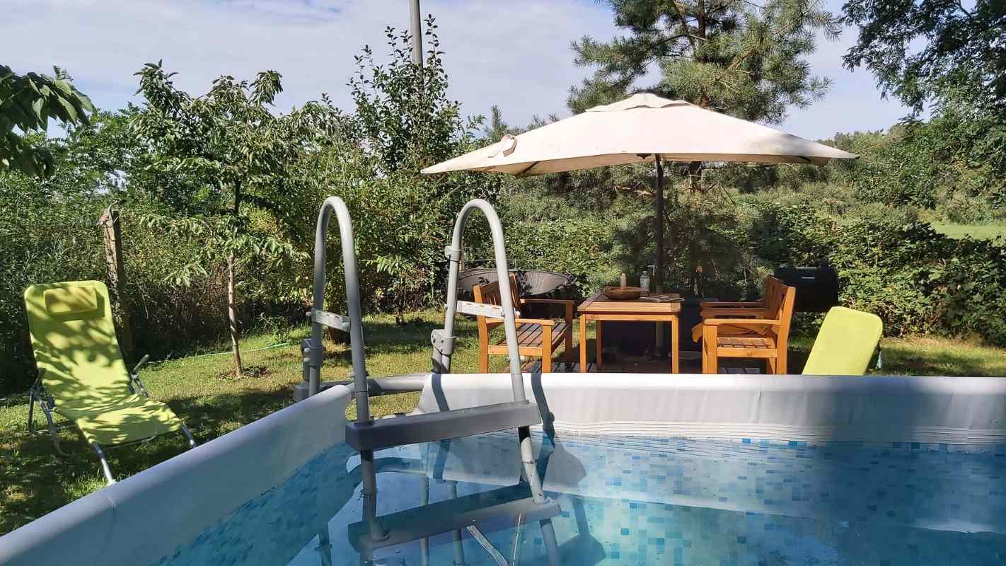- Obstwiese mit Pool, Grill und Essplatz und Blick auf das Luch