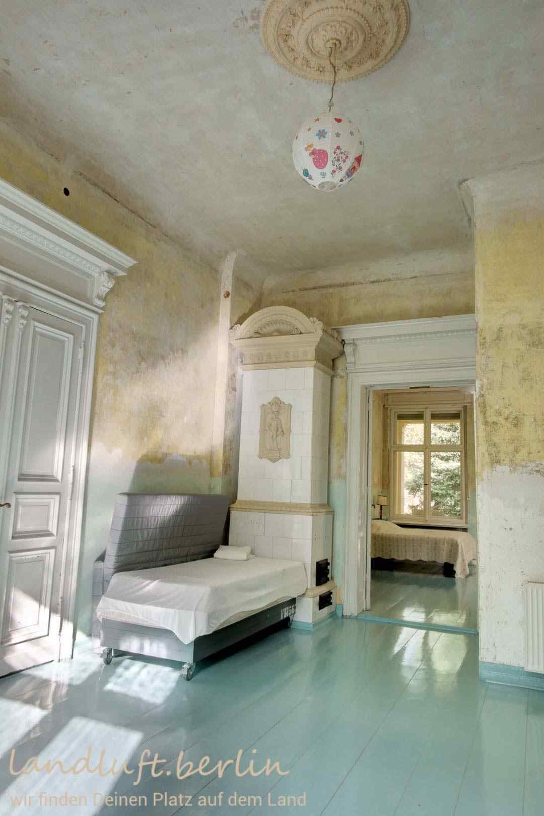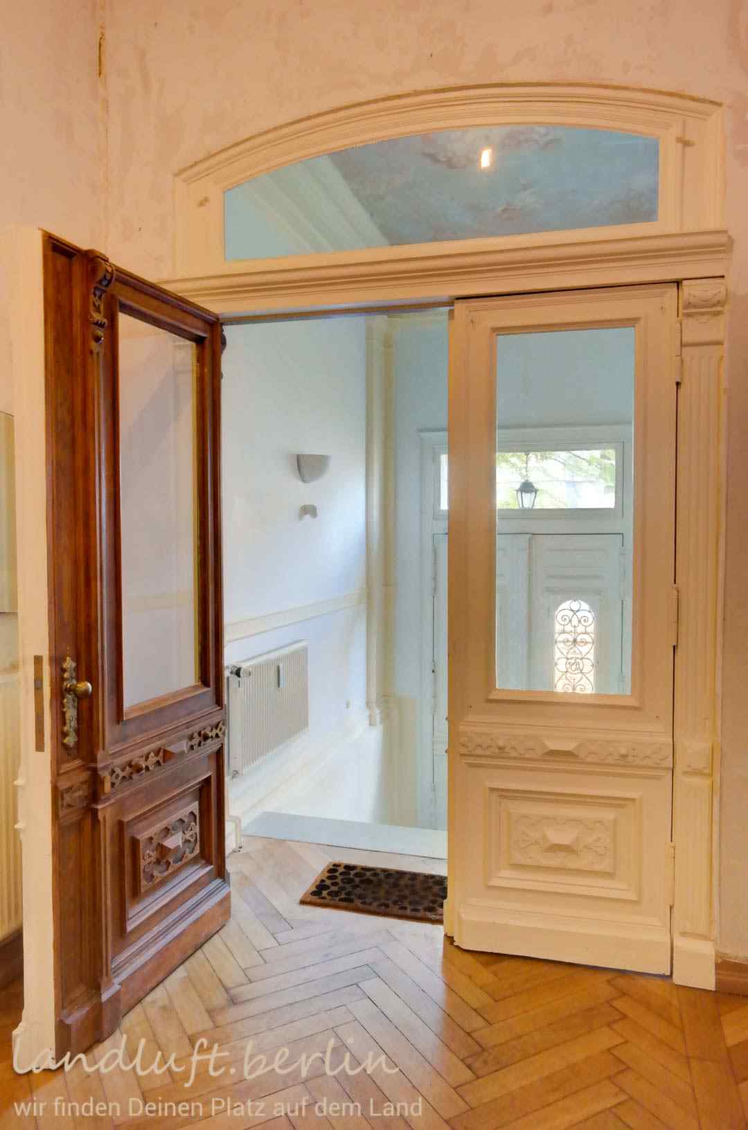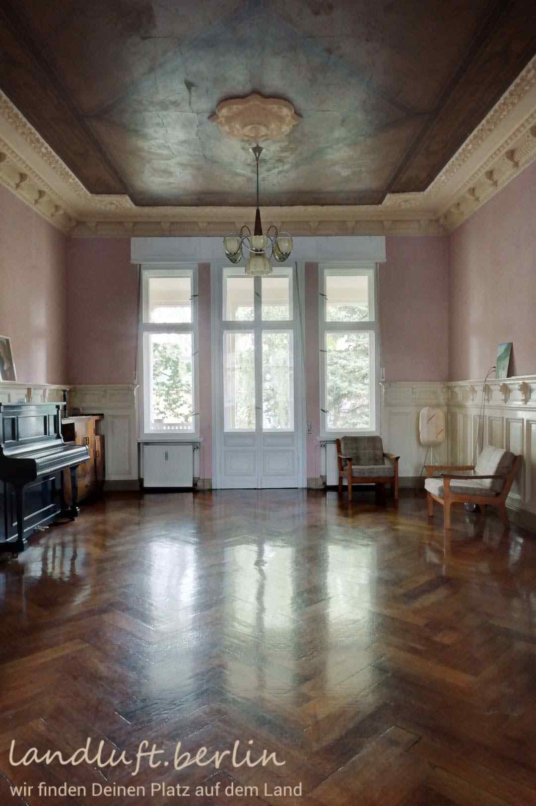 A late 19th century mansion, with very spacious rooms and elaborate original details, made with a craftsmanship almost unaffordable today. Situated in the center of a recently brushed up quaint small town which is probably on the verge of becoming popular, amidst a beautiful landscape with a high recreational value and at the same time only 40 minutes by train from central Berlin (Potsdamer Platz).
