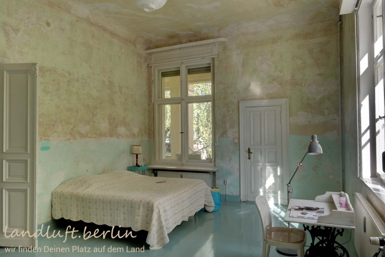- Blick aus dem straßenseitigen Süd-Zimmer in das gartenseitige Ost-Zimmer