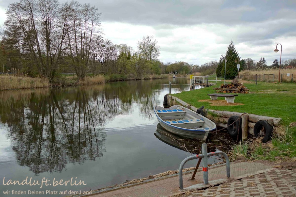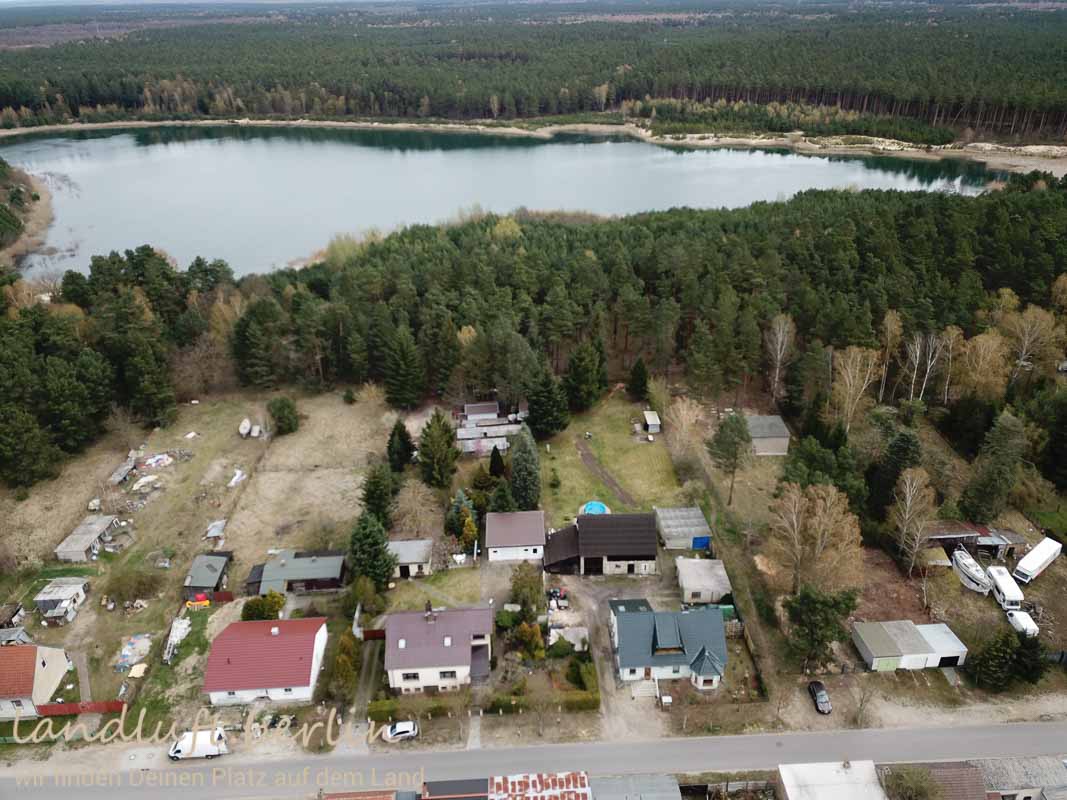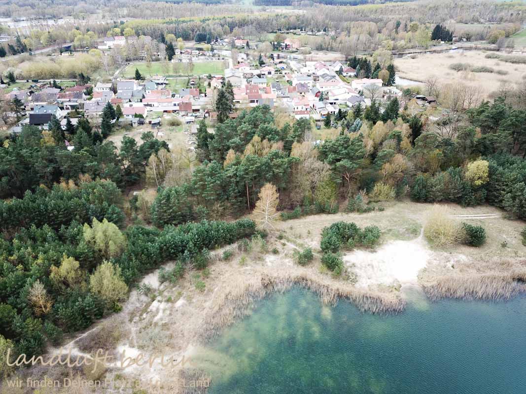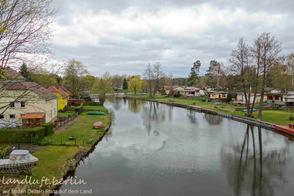 - Stich mit Badestelle, dahinter das Grundstück und dann der ort und die Havel