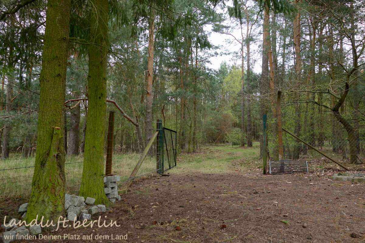 - Gartentor zum Wald, kurz dahinter die Badestelle