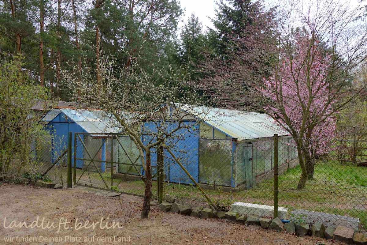 | Nebengebäude | Garage mit Aufenthaltsraum, Lagerschuppen massiv, Hühnerstall, 3 Gewächshäuser, Unterstand |