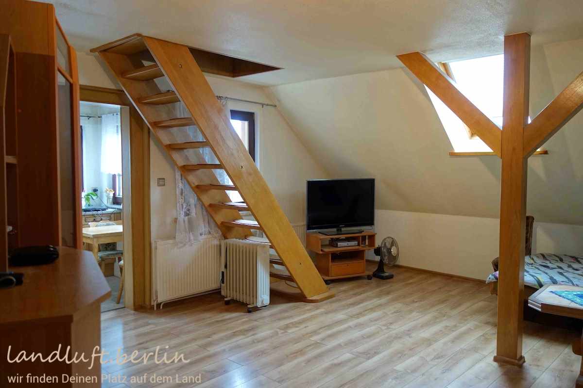 - Wohnzimmer DG mit Treppe zum ausgebauten Spitzboden